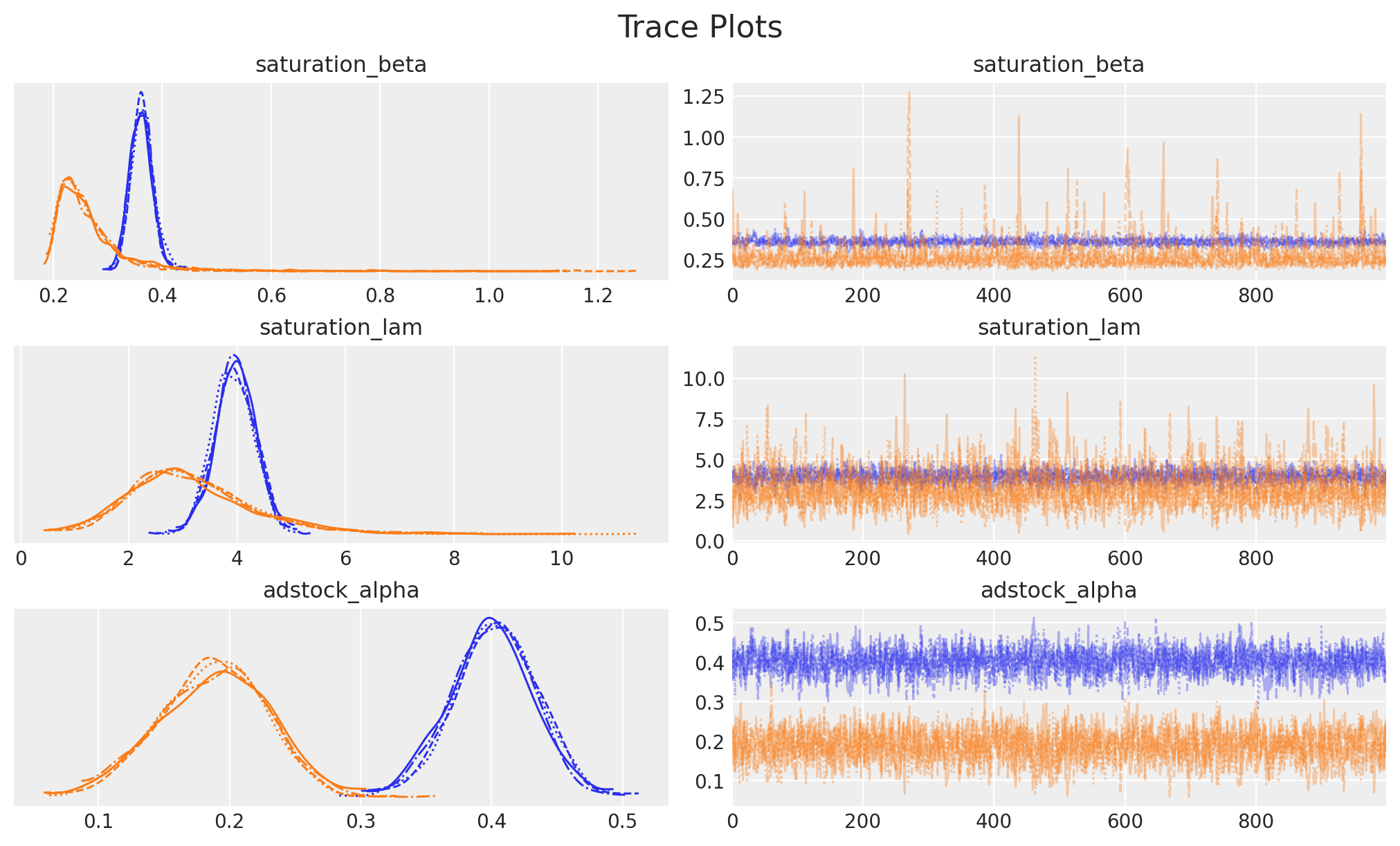 Let’s see how we can fit a basic MMM model to understand these effects and measure channel contributions.